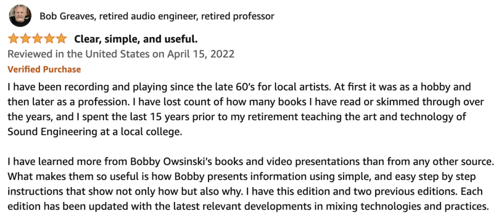 The materials on this and related Bobby Owsinski sites are provided “as is”. BOMG makes no warranties, expressed or implied, and hereby disclaims and negates all other warranties, including without limitation, implied warranties or conditions of merchantability, fitness for a particular purpose, or non-infringement of intellectual property or other violation of rights. Further, BOMG does not warrant or make any representations concerning the accuracy, likely results, or reliability of the use of the materials on its Internet web site or otherwise relating to such materials or on any sites linked to this site.